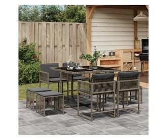 Градински трапезен комплект 9 части с възглавници сив полиратан