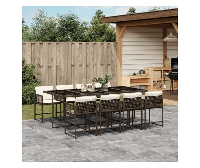 Градински трапезен комплект възглавници 9 части кафяв полиратан