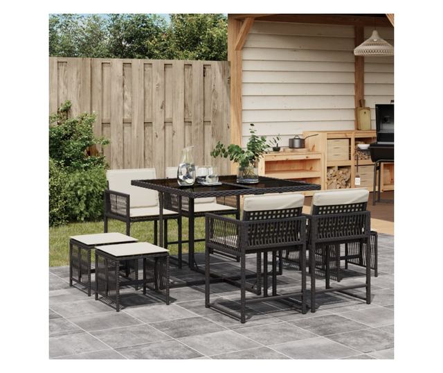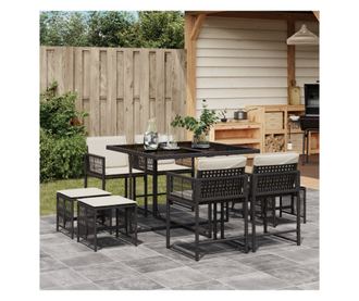 Градински трапезен комплект възглавници 9 части черен полиратан