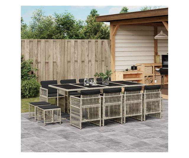Градински комплект от 13части с възглавници светлосив полиратан