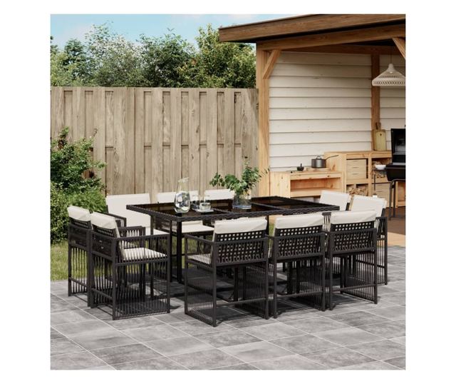 Градински комплект с възглавници 11 части полиратан черен