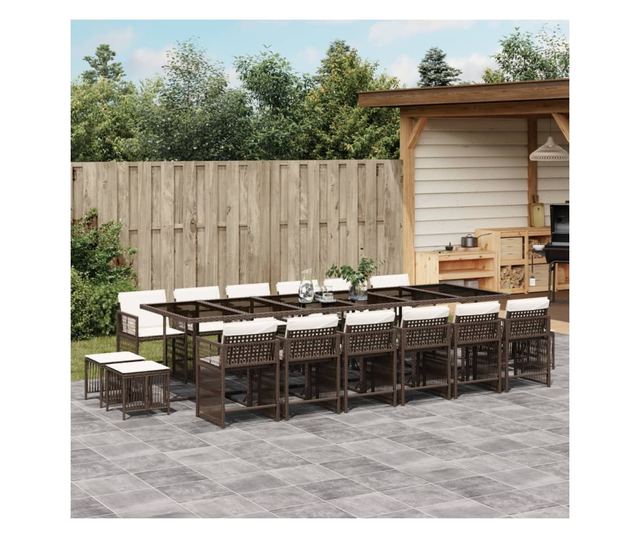 Градински комплект с възглавници 17 части кафяв полиратан