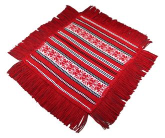 Покривка за маса с ресни, изтъкана с традиционни мотиви от района на Трансилвания.