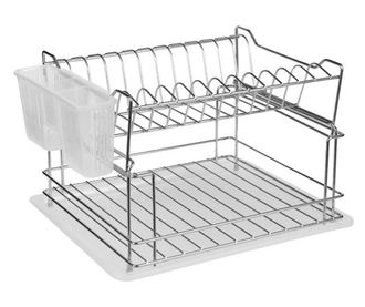Двуетажна стойка за съдове с тава за събиране на вода и външна стойка за прибори.