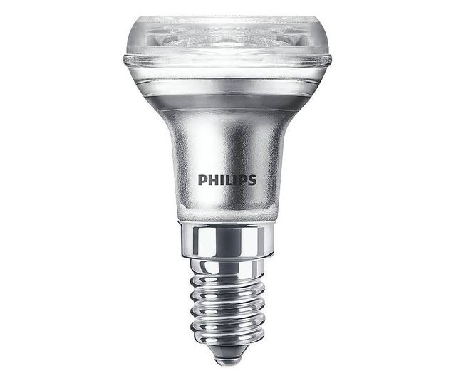 Philips CorePro. Мощност на крушката: 4.3 W, Еквивалентна мощност на крушката: 60 W, Тип на фасунгата: E14, Светлинен поток: 320 lm, Живот на крушката: 15000 h, Цвят на светлината: Топло бял, Цветна температура: 2700 K, Ъгъл на светене: 36°, Индекс на цветопредаване (CRI): 80, Фактор на мощността: 0.7