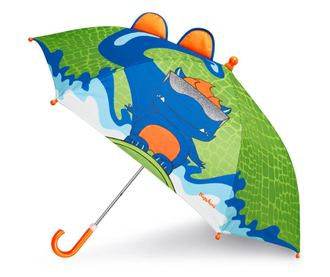 Диаметър на отворен чадър: 77 см. Дължина на чадъра в затворено положение: 62 см. Ергономичен дизайн на дръжката и лесен за използване механизъм, специално проектиран за деца. Върхът на чадъра е оборудван с предпазно топче, за да се избегнат инциденти. Чадърът е декориран със забавен и цветен дизайн на динозавър, който ще внесе настроение в дъждовните дни. Ярките цветове и 3D елементи като ушички правят чадъра още по-атрактивен за малчуганите. Качествена изработка, лесен за употреба и удобен /не е сгъваем/.