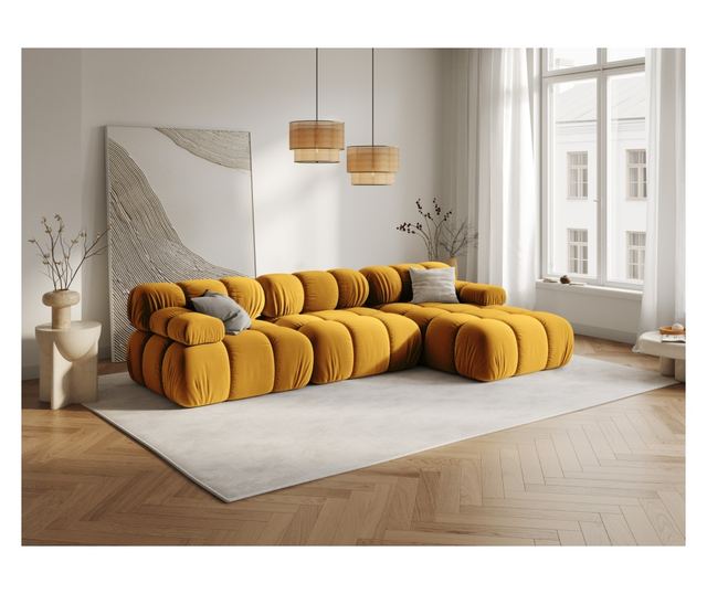 Открийте модулния ъглов диван Milo Casa 899483 – перфектната комбинация от комфорт и стил, която ще превърне всяка всекидневна в оазис на релаксация. Този диван, облян в жив жълт цвят, внася свежест и положителна енергия във всеки ъгъл на пространството.