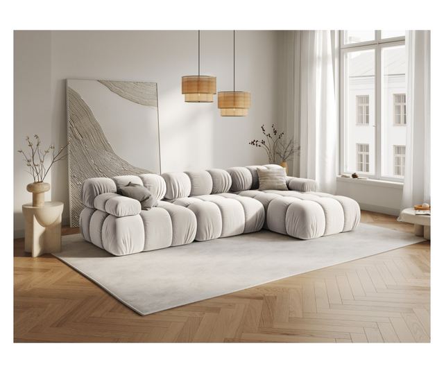 Комфортът и стилът се срещат в модулния ъглов диван Milo Casa 899483. Този елегантен диван, тапициран със светлобежов плат, е идеалното допълнение към всеки модерен дом. Неговата модулна природа ви позволява да го персонализирате според вашето пространство и нужди, създавайки идеално място за отдих и общуване.
