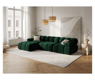 Модулен ъглов диван Milo Casa 899483. Комфорт и стил в едно. Този тъмнозелен модулен ъглов диван предлага елегантност и практичност. Неговият адаптивен дизайн позволява персонализиране на пространството, а висококачествените материали осигуряват дълготраен комфорт и издръжливост. Перфектен за релакс, време със семейството или филмови вечери.