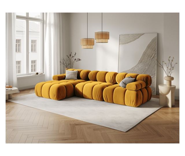 Добавете слънчев акцент във вашата всекидневна с модулния ъглов диван Milo Casa. Неговият весел жълт цвят ви приканва да се отпуснете и да създадете трайни спомени. Този диван, с елегантния си ляв ъгъл, се вписва перфектно в модерния интериор, превръщайки пространството ви в удобно убежище. Изработен от внимателно подбрани, висококачествени материали, той предлага отлична издръжливост и мекота. Модулният дизайн ви позволява да го персонализирате, за да пасне на всеки ъгъл или повод. Независимо дали сте домакин на събиране или се наслаждавате на спокоен следобед, диванът Milo Casa превръща вашата всекидневна в топъл и стилен център. Гостите със сигурност ще се възхитят на това произведение, което отразява вашата уникална личност и изискан вкус.