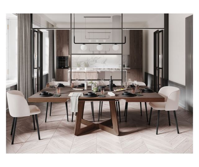 Представете си тази маса във вашата кухня, заобиколена от любими хора. Перфектна за ежедневни хранения и събирания, нейният елегантен дизайн ще впечатли вашите гости. В съчетание с модерни столове, тя ще се превърне в център на вашия дом, създавайки трайни спомени.