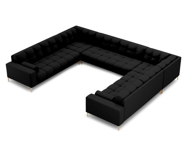 Ъгловият диван Cosmopolitan Design 622316 U-образен вдъхва нов живот на вашата всекидневна с елегантност и комфорт. Тапициран с висококачествена черна Neve текстурирана материя, този диван предлага изключителна мекота и издръжливост. Златните крака добавят луксозен акцент, превръщайки го в централен елемент във всяко пространство. Перфектен за релакс или общуване, неговият модерен дизайн и комфорт ще зарадват гостите ви. Cosmopolitan Design въплъщава съвременния дизайн и функционалност, създавайки вечни мебели с качествени материали и иновативни форми.