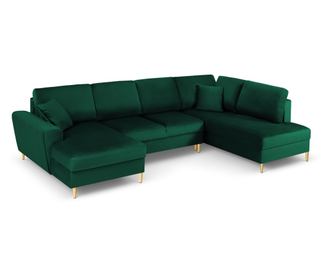 Изпитайте лукс и комфорт с панорамния диван Cosmopolitan Design 620000. Този диван съчетава модерен дизайн с отлична функционалност, идеален за създаване на елегантно и релаксиращо пространство във вашия дом. Наситеният му тъмнозелен цвят, с кадифена текстура и лъскави златни крака, придава изтънченост на всяка стая. Дизайнът с десен ъгъл максимизира пространството, което го прави чудесно място за събиране. Представете си как слънчевата светлина се отразява от повърхността му, създавайки приятна атмосфера, а вечер е идеалното място за отдих и общуване. Гостите ще бъдат впечатлени от елегантния му дизайн, разпознавайки вашия изискан вкус. Cosmopolitan Design представлява съвременен дизайн и високо качество, създавайки мебели, които трансформират пространствата и отразяват вашата индивидуалност.