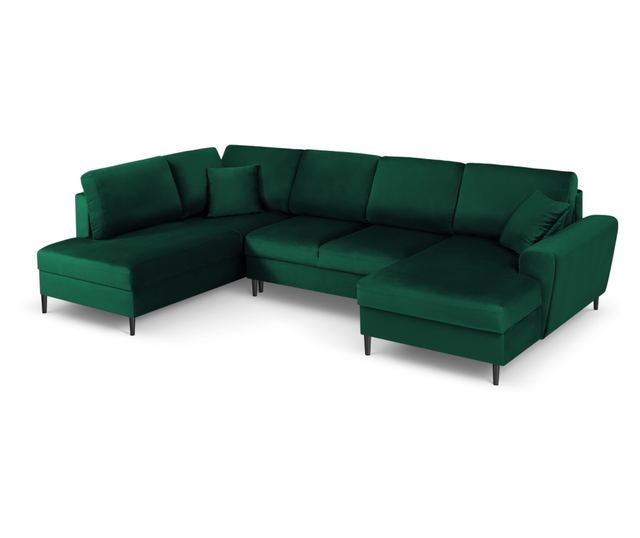 Изживейте лукса с панорамния диван Cosmopolitan Design 620000. В елегантен тъмнозелен цвят, този диван съчетава модерен дизайн и изключителна функционалност, идеален за всяко съвременно пространство. С ляв ъгъл и черни хромирани крака, той подчертава изтънчеността и стила, а солидната му конструкция гарантира издръжливост.