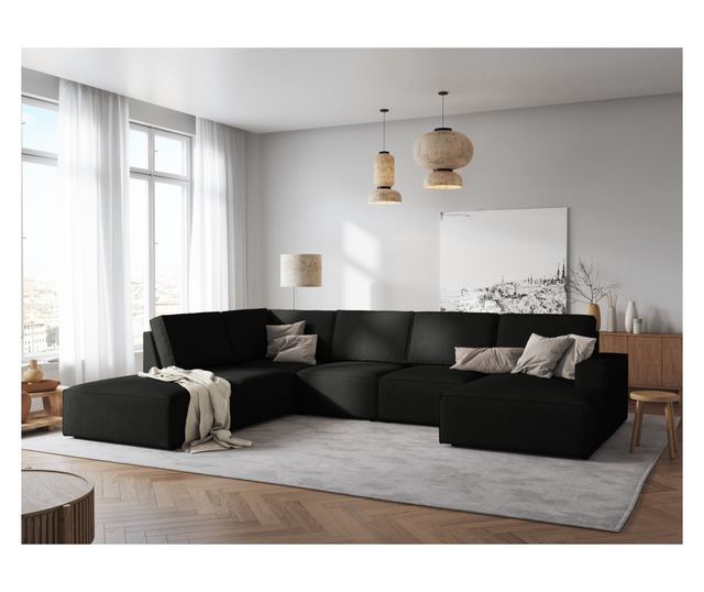 U-образният ъглов диван Milo Casa 898087 е перфектно допълнение към всеки модерен дом, предлагайки комфорт и стил. Този елегантен ъглов диван е тапициран с висококачествен плат от кордой, осигуряващ изключителен комфорт и издръжливост. Неговият изискан дизайн и черен цвят лесно се съчетават с различни стилове на обзавеждане, което го прави идеален избор за тези, които ценят функционалността и естетиката.