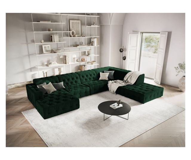 Насладете се на максимален комфорт и стил с ъгловия диван с U-образна форма Milo Casa 896673. Този диван превръща вашата всекидневна в изискано място за отдих. Наситеният тъмнозелен цвят и модерният дизайн се вписват безпроблемно във всяко съвременно пространство, предлагайки просторна зона за релакс и общуване. Изработен от висококачествени материали, този диван е издръжлив и изключително удобен. Десният ъгъл максимизира пространството. Перфектен за семейни събирания или тихи вечери, този диван отразява вашия изискан вкус и ви кани да създадете незабравими моменти.