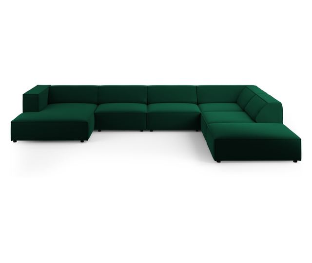 Ъглов диван Cosmopolitan Design 622436 U-образен. Комфорт и стил в едно. Този ъглов диван, тапициран с луксозна кадифена материя, внася нотка елегантност във всяко пространство. Неговият модерен дизайн и тъмнозелен цвят се вписват перфектно в различни стилове на обзавеждане, осигурявайки идеално място за отдих и общуване.