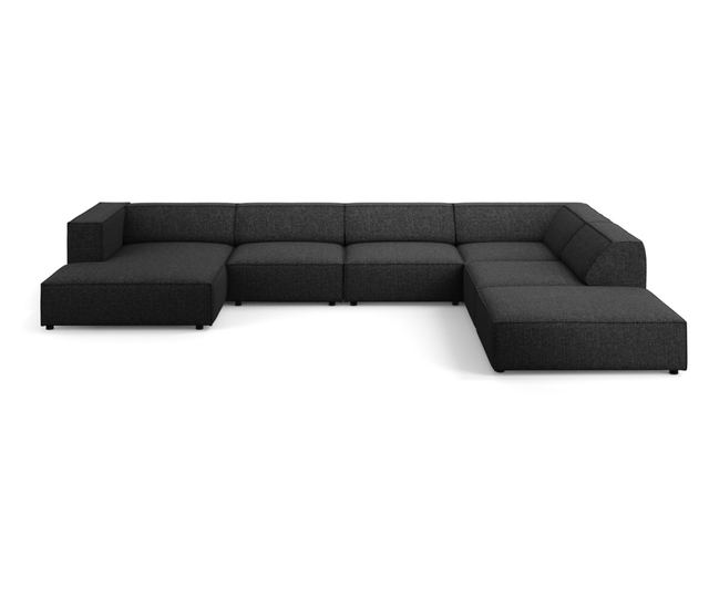 Ъгловият диван с U-образна форма 622436 Cosmopolitan Design съчетава модерен дизайн с отличен комфорт. Изработен от висококачествен плат Chenille, този елегантен диван предлага меко усещане. Черният му цвят допълва различни интериорни стилове, създавайки релаксиращо пространство. Проектиран с десен ъгъл, този диван оптимизира пространството, което го прави подходящ за всеки хол. Издръжливият плат Chenille (Haga) е не само издръжлив,