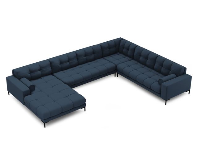 Cosmopolitan Design 622212 U-образен диван. Потопете се в комфорт и стил с U-образния диван Cosmopolitan Design. Този елегантен диван, тапициран с висококачествена текстурирана материя, е перфектната комбинация от функционалност и естетика. Неговият син цвят и модерен дизайн ще внесат нотка свежест във вашата всекидневна, а лъскавите черни крака добавят нотка изтънченост.