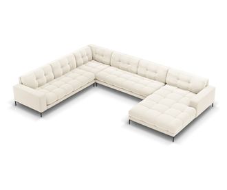 Ъглов диван Cosmopolitan Design 622212 U-форма. Потопете се в лукс и комфорт с ъгловия диван Cosmopolitan Design U-форма. Този елегантен диван, тапициран с мека кадифена тъкан Bluvel в светлобежово, е перфектната комбинация от стил и функционалност. Просторната му конструкция и модерният дизайн с лъскави черни крака го правят идеален централен елемент за всяка всекидневна.