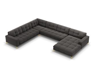 Добавете елегантност към хола си с ъгловия диван Cosmopolitan Design 622212. Изработен от мек Bluvel кадифе в тъмно сив цвят, този диван е едновременно красив и удобен. Стините златни крака добавят бляскав акцент, правейки всяка стая да изглежда по-луксозна.