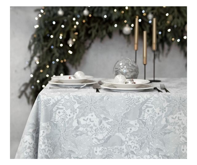 Тази сива покривка се вписва идеално в различни интериорни стилове, от минималистичен до съвременен. Нейният неутрален цвят лесно се комбинира с други декоративни елементи, позволявайки ви да създадете уникално и персонализирано пространство. Устойчива на петна, тя улеснява поддръжката и почистването, осигурявайки дълготрайна красота и функционалност. Тя е перфектна както за ежедневна употреба, така и за празнични поводи.