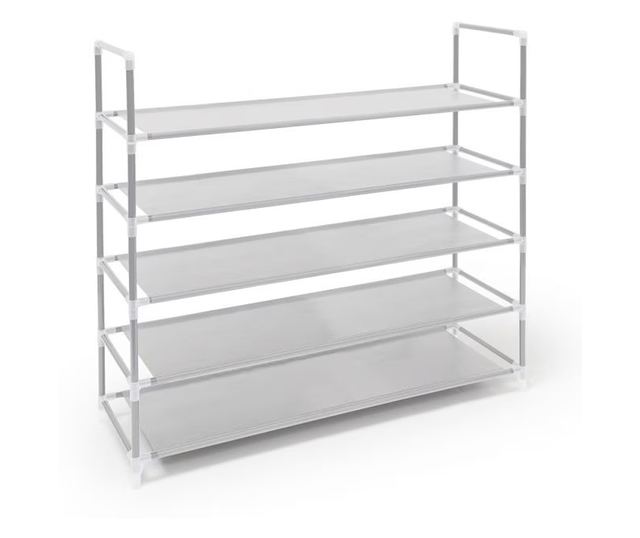 Рафт за обувки Caerus Capital, 5 нива, Вместимост 20 чивта, Разтегателен, Бял