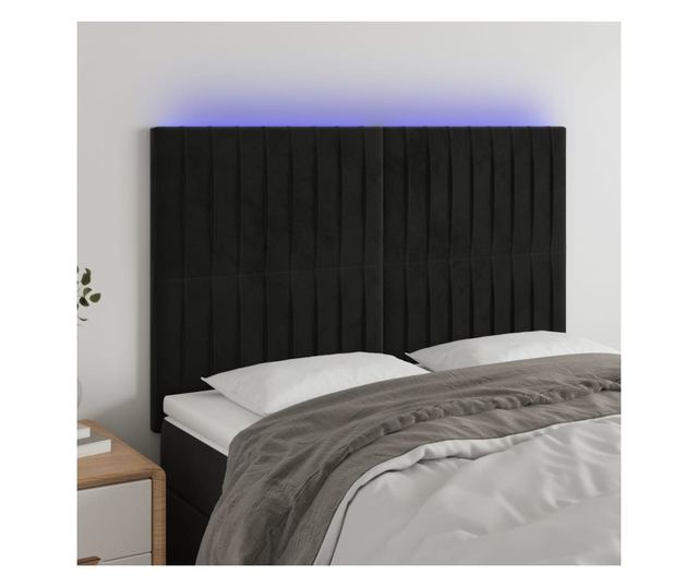 LED Табла за легло, Черно, 144x5x118/128 см, Кадифе