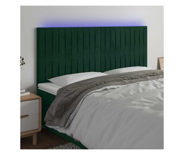 LED Табла за легло, Тъмнозелено, 180x5x118/128 см, Кадифе