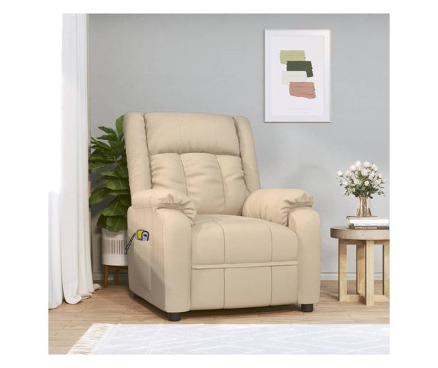 Електрически масажен фотьойл с функция за накланяне, кремав, текстил