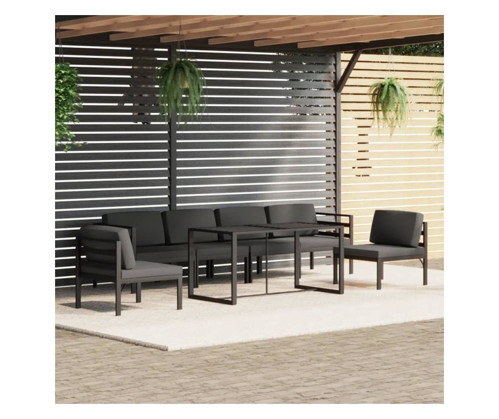 Комбинирайки стил и функционалност, този комплект градински мебели от алуминий предлага идеално място за релакс и пълноценно прекарване на свободното време.