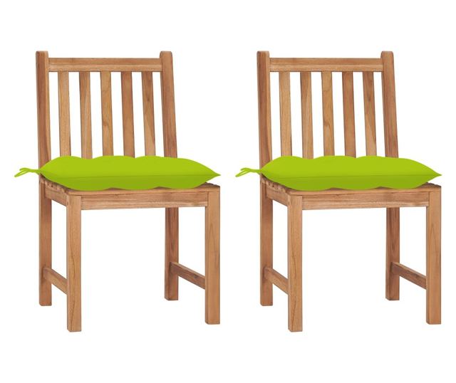 Градински столове с възглавници, 2 бр., Масивно дърво тиково дърво
