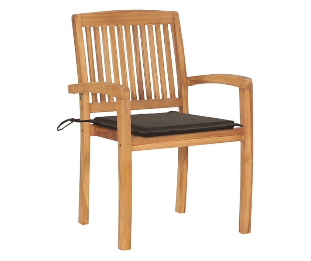 Комплектът външни столове разполага с решетъчни облегалки и леко извити подлакътници, осигуряващи допълнителен комфорт при сядане. Столовете също са подходящи за подреждане един върху друг, за да спестите място, когато не се използват. Включените възглавници са практични и имат декоративна функция.