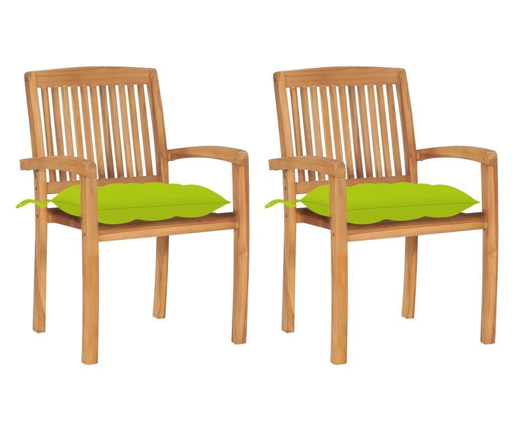 Комплектът външни столове има решетъчни облегалки и леко извити подлакътници, осигуряващи допълнителен комфорт при сядане. Столовете също са с възможност за подреждане, за да спестят място, когато не се използват. Включените възглавници са практични и имат декоративна функция.
