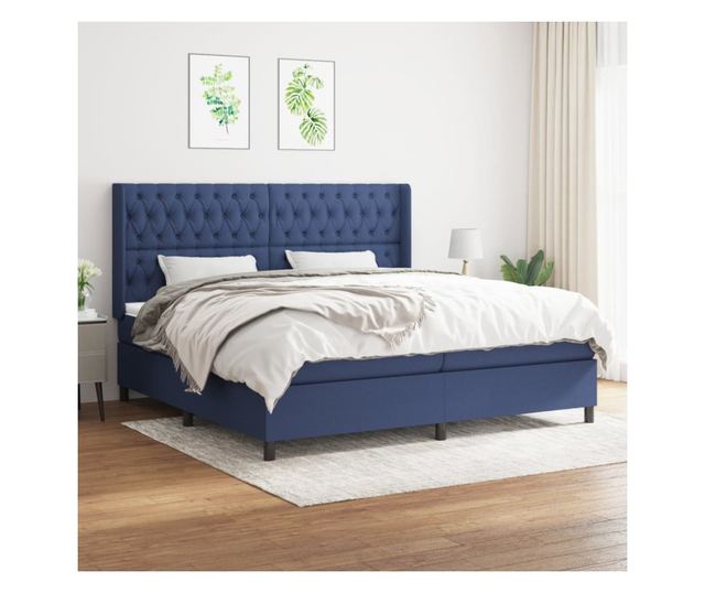 Боксспринг легло с матрак, синьо, 200x200 см, текстил