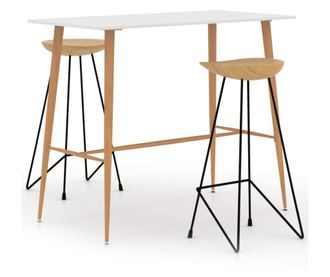 Тази бар маса е с плот от МДФ и метални крака с вид на масивно дърво, което я прави лесна за почистване. Тези бар столове, изработени от масивно тиково дърво, са обработени, изсушени в пещ и фино шлайфани за гладко покритие. Тиковото дърво е известно със своята изключителна здравина, което го прави перфектния избор за дълготраен мебелен елемент. Освен това краката са изработени от издръжлив желязо, което гарантира тяхната здравина.