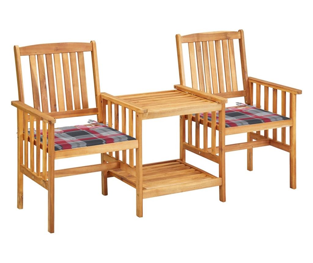 Масата и столовете са изработени от масивно акациево дърво с маслено покритие, което ги прави особено издръжливи и устойчиви. Здравият плот и долният рафт са идеални за поставяне на чаши, книги и други дребни предмети. Облегалките и подлакътниците на столовете осигуряват оптимален комфорт при сядане. Освен това, благодарение на масленото покритие, мебелите се почистват лесно с влажна кърпа. Възглавниците добавят допълнителен комфорт. Всяка възглавница има два комплекта връзки за сигурно закрепване към бистро комплекта.