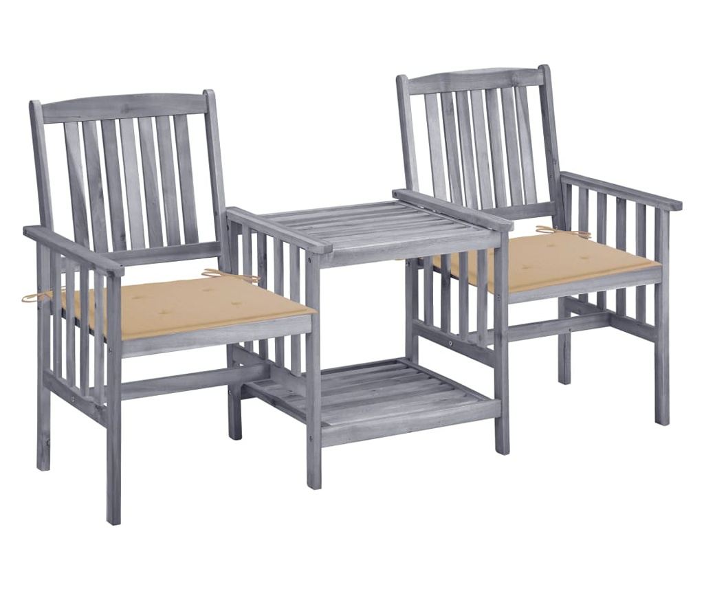 Масата и столовете са изработени от масивна акациева дървесина, което ги прави особено издръжливи и здрави. Здравият плот и долният рафт са идеални за поставяне на чаши, книги и други дребни предмети. Облегалките и подлакътниците на столовете осигуряват оптимален комфорт при сядане. Освен това възглавниците добавят допълнителен комфорт. Всяка възглавница има два комплекта връзки за сигурно закрепване към бистро комплекта.