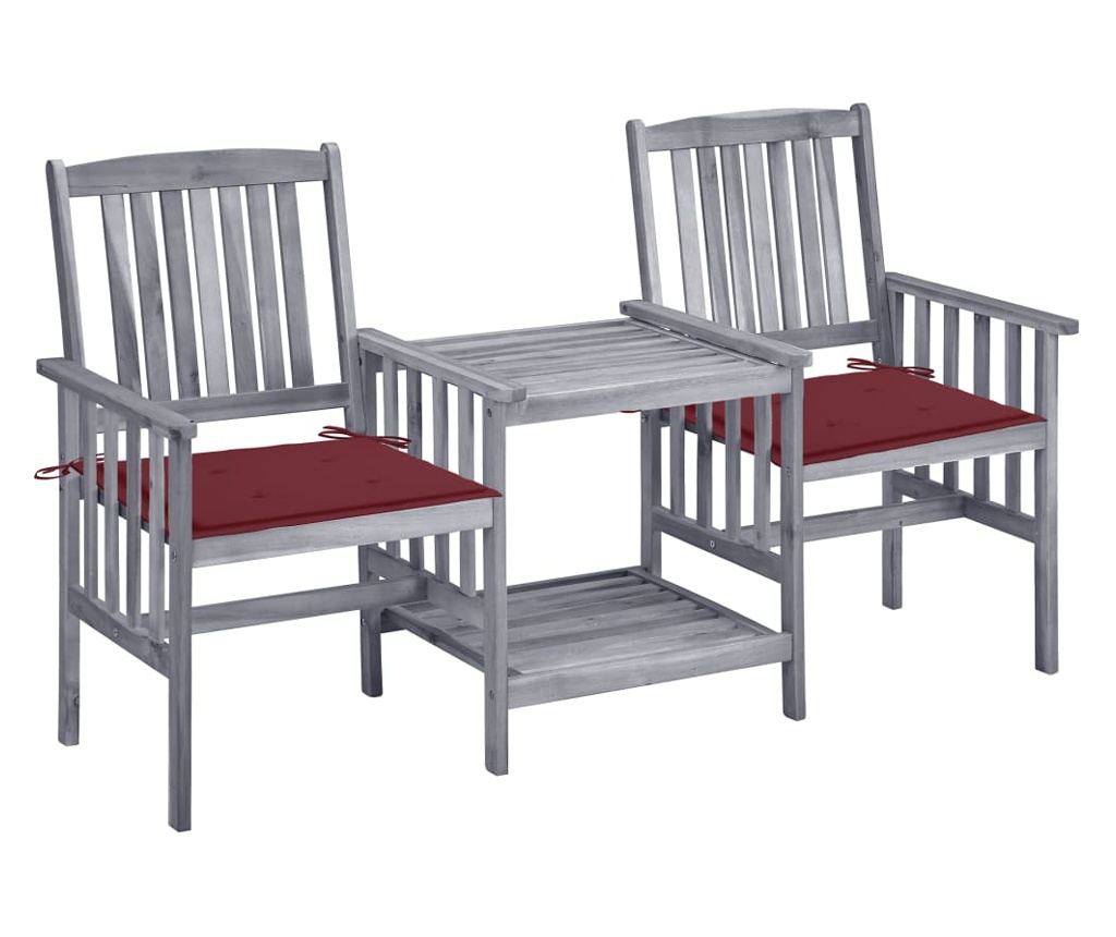 Масата и столовете са изработени от масивна акациева дървесина, което ги прави особено издръжливи и здрави. Здравият плот и долният рафт са идеални за поставяне на чаши, книги и други дребни предмети. Облегалките и подлакътниците на столовете осигуряват оптимален комфорт при сядане. Освен това възглавниците добавят допълнителен комфорт. Всяка възглавница има два комплекта връзки за сигурно закрепване към бистро комплекта.