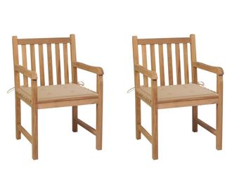 Градински столове с бежови възглавници, 2 бр., Масивно дърво тик