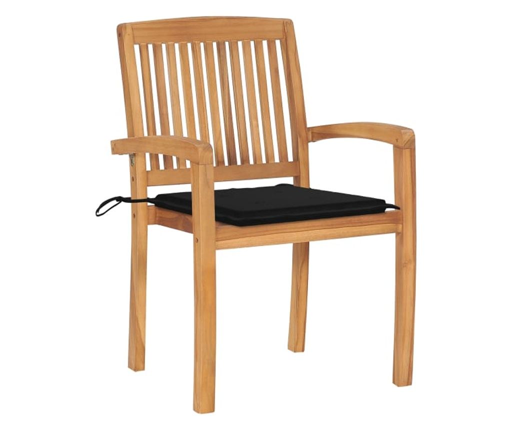 Комплектът външни столове има решетъчни облегалки и леко извити подлакътници, осигуряващи допълнителен комфорт при сядане. Столовете също са подходящи за подреждане един върху друг, за да спестите място, когато не се използват. Включените възглавници са практични и имат декоративна функция.