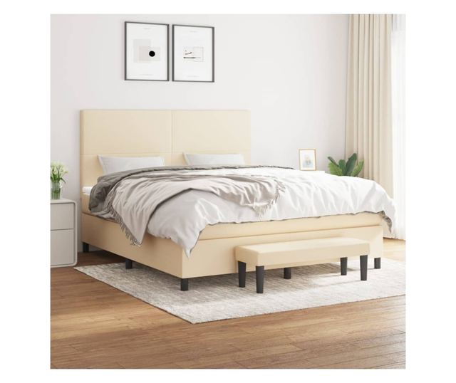 Боксспринг легло с матрак, крем, 160x200 см, текстил