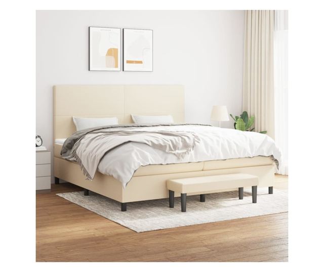 Боксспринг легло с матрак, кремаво, 200x200 см, текстил