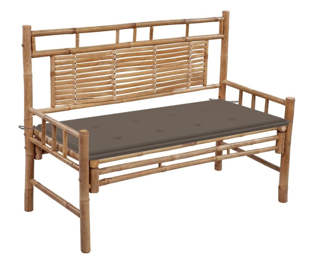 Пейката за външна употреба е проектирана с облегалка, което я прави удобна за четене или почивка. Изработена от устойчив на атмосферни влияния и водоустойчив бамбук, градинската пейка е издръжлива и стабилна. Също така се почиства лесно с влажна кърпа. Освен това включената възглавница осигурява допълнителен комфорт, докато си почивате. Изработена е от 100% полиестер, който е обработен да бъде водоустойчив. Всяка възглавница има два комплекта връзки за по-добро закрепване към пейката.
