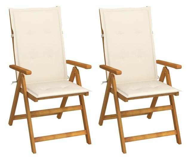Сгъваеми градински столове с възглавници, 2 бр., Масивна акациева дървесина