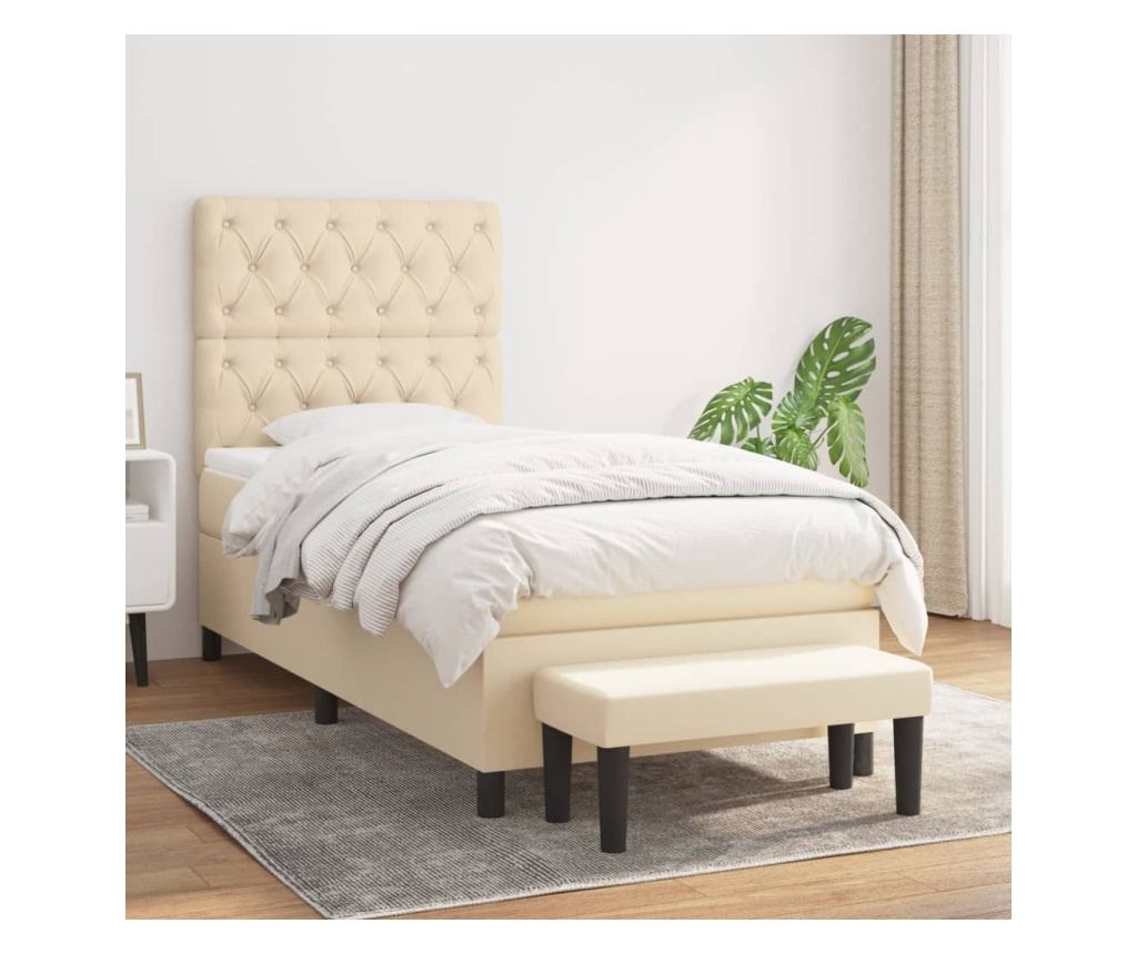 Боксспринг легло с матрак, крем, 80x200 см, текстил