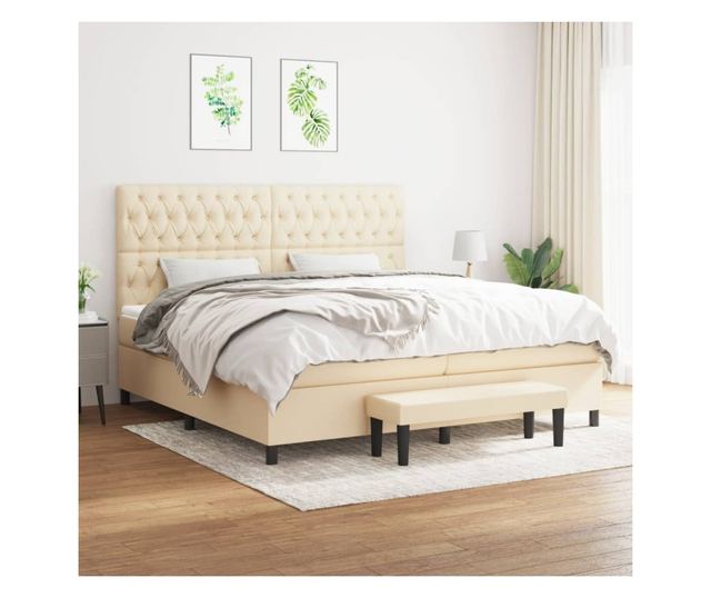 Боксспринг легло с матрак, кремаво, 200x200 см, текстил