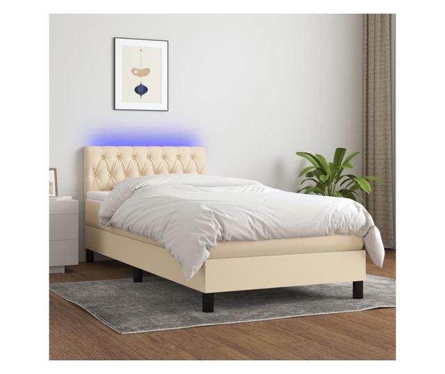 Легло с пружини, матрак и LED, кремаво, 100x200 см, текстил