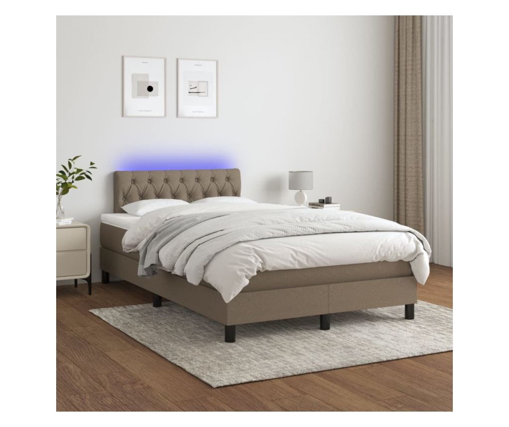 Рамка за легло с пружинен матрак и LED, сиво таупе, 120x200 см, текстил