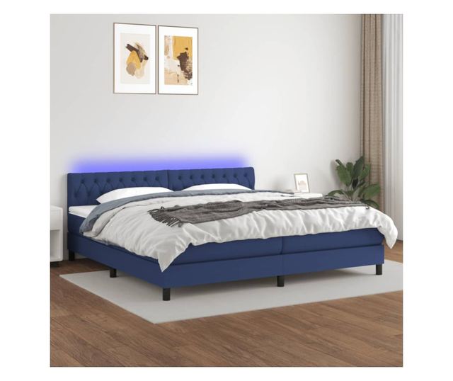Пружинно легло с матрак и LED, синьо, 200x200 см, текстил